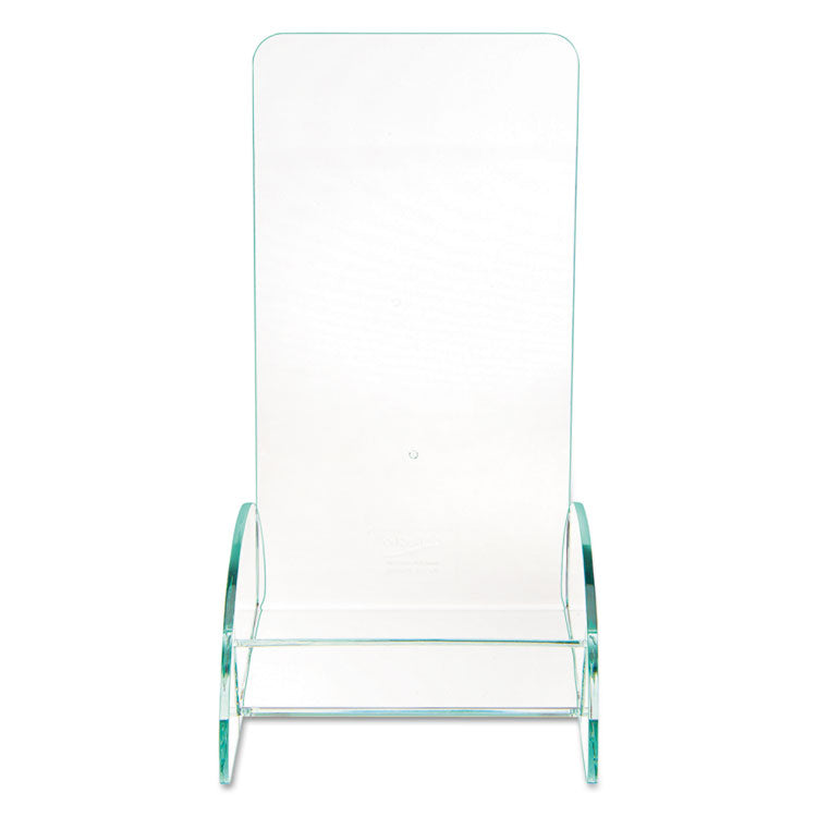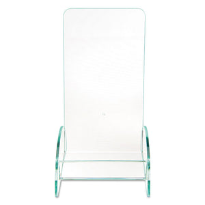 Sleek, euro-style literature holder features green-tinted edges that create the look of a high-end glass display unit. Use where image and value are equally important. More durable and lighter weight than glass, its transparent, acrylic construction provides an unobstructed view of contents. Smooth curves round out the elegance of this display holder. Has the capacity to hold more than 2"d of literature.
