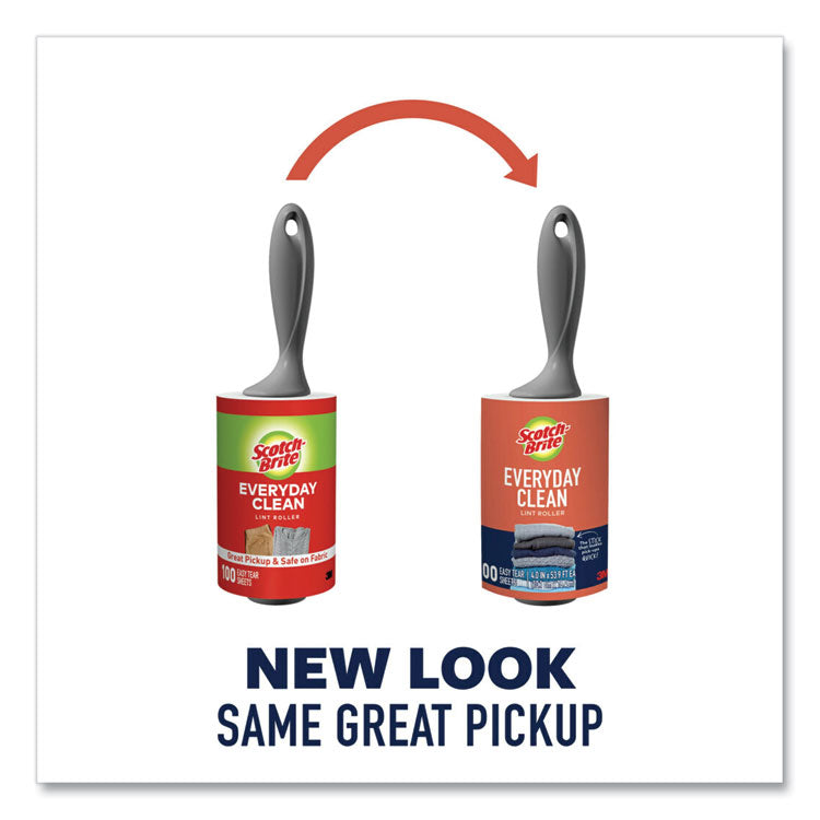 Exclusive Scotch™ film backed adhesive. Remove lint, pet hair, dust and more from clothing with smooth rolling action. Exclusive coreless roll for less waste.
