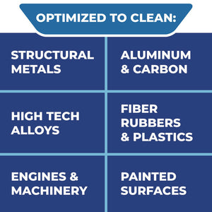 Extreme Simple Green Aircraft and Precision Cleaner was specifically designed with long term metal cleaning in mind. It's a non-flammable, water-based cleaner with an added corrosion inhibitor that provides an extra layer of protection when cleaning delicate metals, rubbers and plastics. Its combined high soil capacity, superior grease-cutting ability, and clean-rinsing formula prevents redeposition - ensuring fast, effective, and high precision cleaning. This formula can be used on aluminum, carbon fiber, high tech alloys, structural metals, paints, protective coatings, and more. Extreme avoids oxidizing finishes, rusting surfaces, and degrading plastics, making it ideal for maintaining structural metals, hoses, seals, and factory finishes.