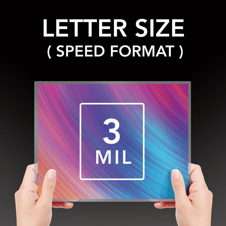 - Thermal lamination pouch includes visible EZUse™ features that magically disappear after lamination.