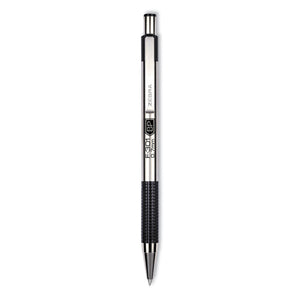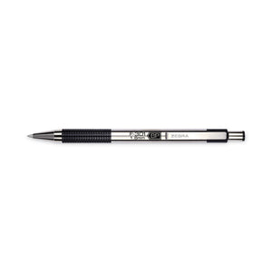 F-301 Ballpoint Pen, Retractable, Bold 1.6 Mm, Black Ink, Stainless Steel/black Barrel, 2/pack