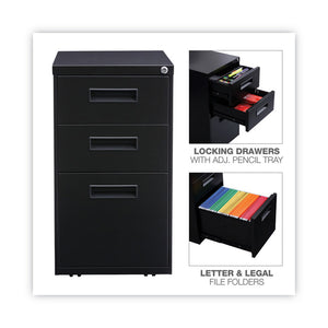 File Pedestal, Left Or Right, 3-Drawers: Box/box/file, Legal/letter, Black, 14.96" X 19.29" X 27.75"
