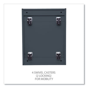 Get organized with a high-sided file cabinet with drawers that accommodate letter or legal-sized hanging files. Steel ball bearing telescoping slide suspension helps drawers glide smoothly and with ease. The counterweight prevents tipping. Equipped with four casters, two locking, two non-locking. Full-length pull permits easy opening. Single key core removable lock with two keys. Durable powder coated finish helps prevent scratches.
