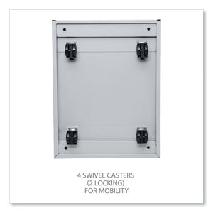Get organized with a high-sided file cabinet with drawers that accommodate letter or legal-sized hanging files. Steel ball bearing telescoping slide suspension helps drawers glide smoothly and with ease. The counterweight prevents tipping. Equipped with four casters, two locking, two non-locking. Full-length pull permits easy opening. Single key core removable lock with two keys. Durable powder coated finish helps prevent scratches.