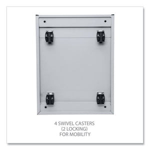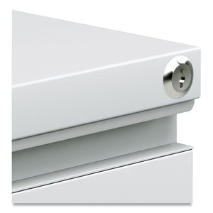Get organized with a high-sided file cabinet with drawers that accommodate letter or legal-sized hanging files. Steel ball bearing telescoping slide suspension helps drawers glide smoothly and with ease. The counterweight prevents tipping. Equipped with four casters, two locking, two non-locking. Full-length pull permits easy opening. Single key core removable lock with two keys. Durable powder coated finish helps prevent scratches.