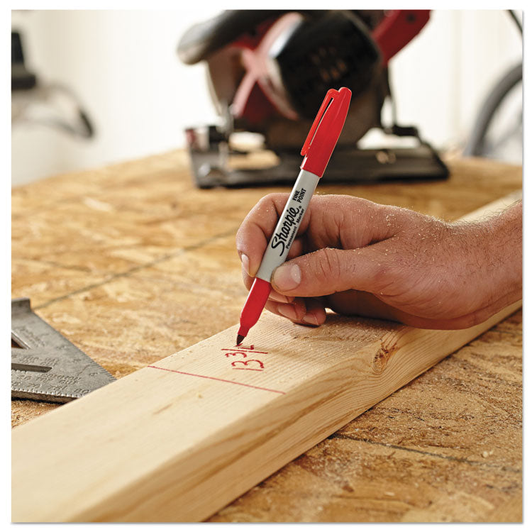 Fine Tip Permanent Marker, Fine Bullet Tip, Red, Dozen