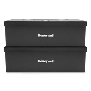 Protect passports and treasured items using this steel security box. Opening the lock requires a key for added security, and the attached handle makes transportation of valuables convenient. The insulated design helps keep contents safe from fire. This Honeywell Security Box fire-resistant steel box has a foam-padded flooring to help prevent items from getting scraped up, and the powder-coated finish is scratch-resistant for added durability.