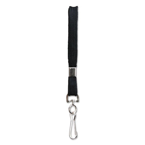 Flat Lanyard, Metal Hook Fastener, 36", Nylon, Black, 100/Pack