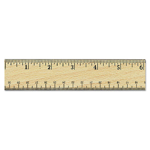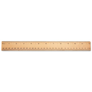 Flat Wood Ruler W/double Metal Edge, Standard, 12" Long, Clear Lacquer Finish