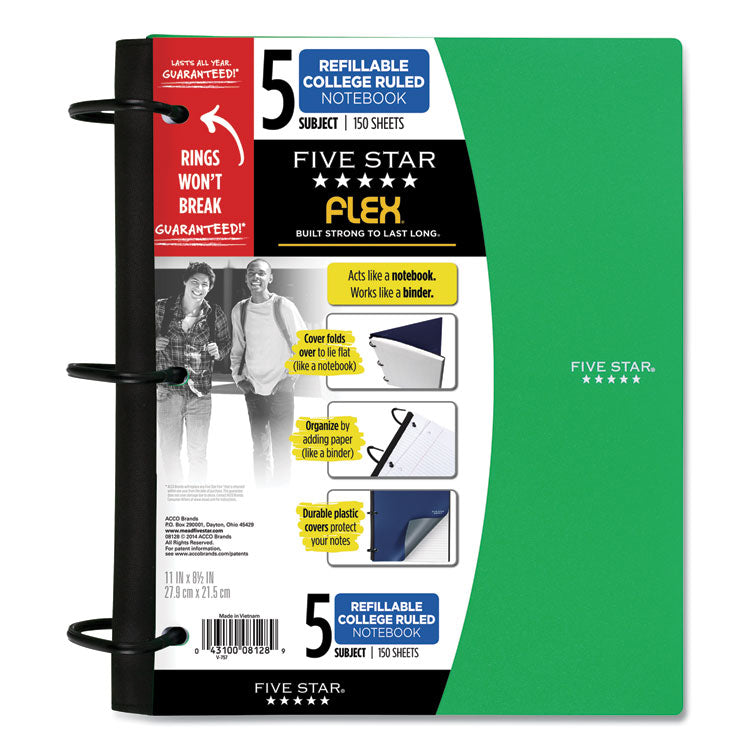 FLEX Notebook, 5-Subject, Medium/College Rule, Randomly Assorted Cover Color, (150) 11 x 8.5 Sheets