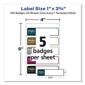 Flexible Self-Adhesive Mini Name Badge Labels, 1 X 3.75, Hello, Assorted, 100/pack