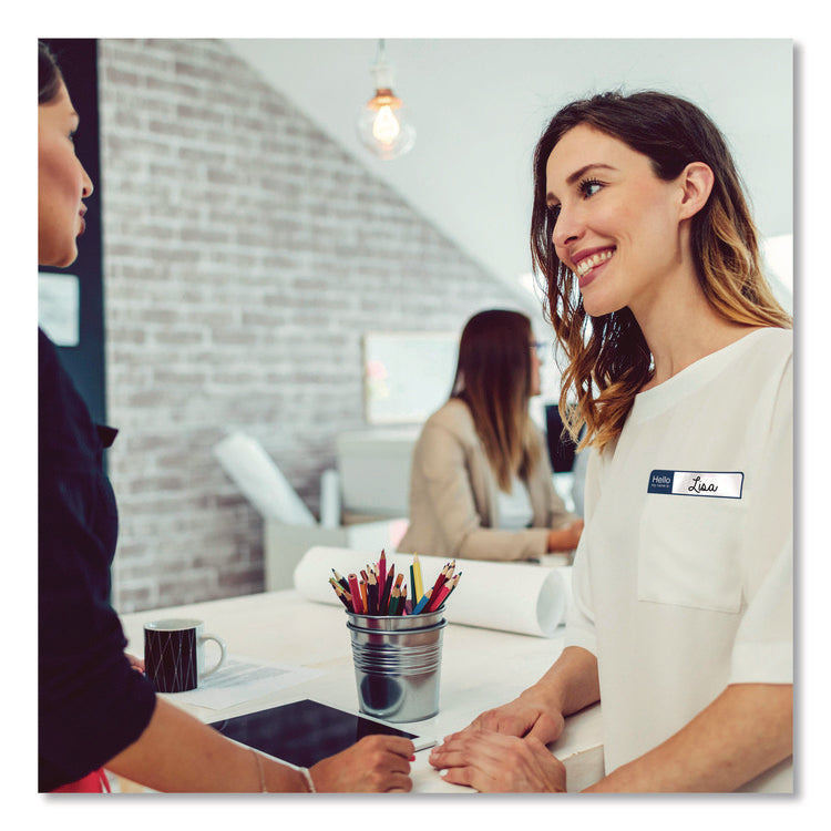 Make the most of your next meeting, party or mixer by printing personalized name badges with sharp, clear text. The badges feature improved flexibility so they move freely with your clothing but stick securely without curling or falling off. The stylish colors and borders add a professional touch, and you can use our free templates and designs at Avery® Design & Print to easily create badges everyone will be proud to wear. Or you can handwrite. These badges look so good nobody will take them off until the event is over. And the removable adhesive is safe for most fabrics, not recommended for use on delicate fabrics.
