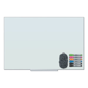 - White frosted glass background creates high contrast with any color dry erase or glass markers. Includes 6 liquid glass markers and 1 shag board eraser.