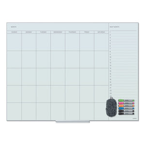 Floating Glass Dry Erase Calendar, Monthly Planning/Scheduling, 48" x 36" (Actual Size: 47" x 35"), White Surface