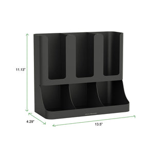Flume Six-Section Upright Coffee Condiment/Cup Organizer, 11.5 x 6.5 x 15, Black