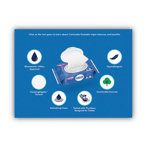 The Cottonelle flushable wet wipe is 100% flushable and is endorsed by the WasteWater Utility (JEA). Designed for toilets and tested with plumbers. The wipe begins breaking down immediately after flushing. Stored in a resealable pack to preserve freshness and moisture. Provides freshness you can feel with Cleaning Ripples and Cleansing Water for a complete clean. Fibers are free of plastic and are sewer-and septic-safe. Alcohol-, paraben-, and dye-free with no harsh ingredients.