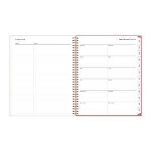 Frame your plans with elegance. Butterflies flit across this beautiful Fly By cover and bring peace to your busy schedule with its graceful pink and blue florals on a cream background. Two-page-per-week spread features lined daily blocks. Monthly view per two-page spread includes a Notes section for important projects. Monthly tabs are coated for durability. Durable, frosted flexible front cover. Twin-wire binding offers easy page turning. Includes pages for Yearly Goals, Contacts, Reference Calendars, and extra Notes pages. Thick, premium quality pages reduce ink bleed-through. Includes six bonus past monthly views for easy yearly transition (July-Dec).