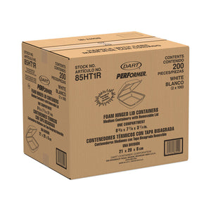 Foam Hinged Lid Containers, 8.38 x 7.78 x 3.25, White, 200/Carton