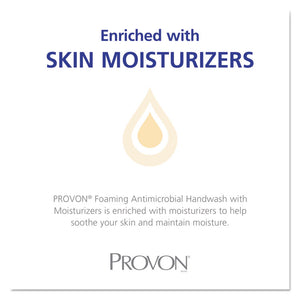 PROVON Foaming Antimicrobial Handwash refill contains 0.3 percent chloroxylenol (PCMX), a common antimicrobial compound used to control bacteria. The foaming formulation is a pre-lathered, translucent amber liquid with a light fragrance, for general-purpose use. The SANITARY SEALED refill bottle helps lock out germs. The PROVON product line from GOJO is most suitable for use in long-term care facilities. The PROVON formulation offers ease of use, packaging that supports a homelike environment for patients, and a comprehensive training program for staff. The PROVON skin care program provides a soothing experience for residents and heightened performance for caregivers. This line helps care facilities maintain an effective skin care regimen for bathing and shampooing, perineal care, and proper moisturization with a family of mild products. PROVON products are color-coded by category for ease of storage and selection, with ergonomic shapes and sizes for convenient one-handed use. Using PROVON helps maintain good hygiene, reduces odors, helps prevent skin breakdown, and helps maintain good skin health.