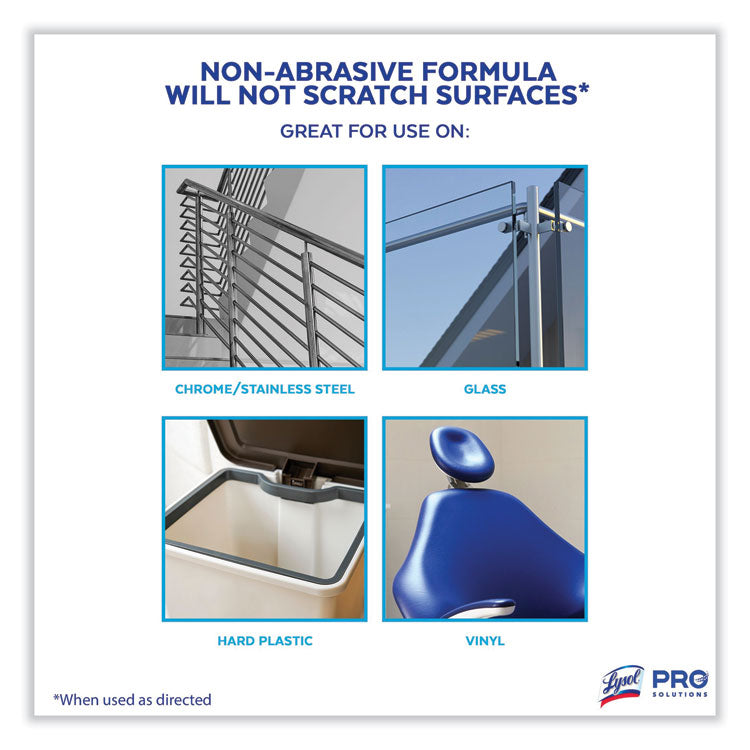 Clean, disinfect, deodorize, and shine surfaces, all with one versatile product: Lysol I.C.™ Foaming Disinfectant Cleaner. Deliver a visible clean and help ensure patients and staff are protected with the foaming formula of this hospital disinfectant. Kill 99.9% of viruses and bacteria and over 40 pathogenic microorganisms when used as directed on hard, non-porous surfaces. Optimize cleaning time with a one-step, non-abrasive foaming cleaner that will not scratch surfaces, including glass, metal, vinyl, hard plastic, glazed ceramic, and porcelain. No scrubbing or rinsing required.