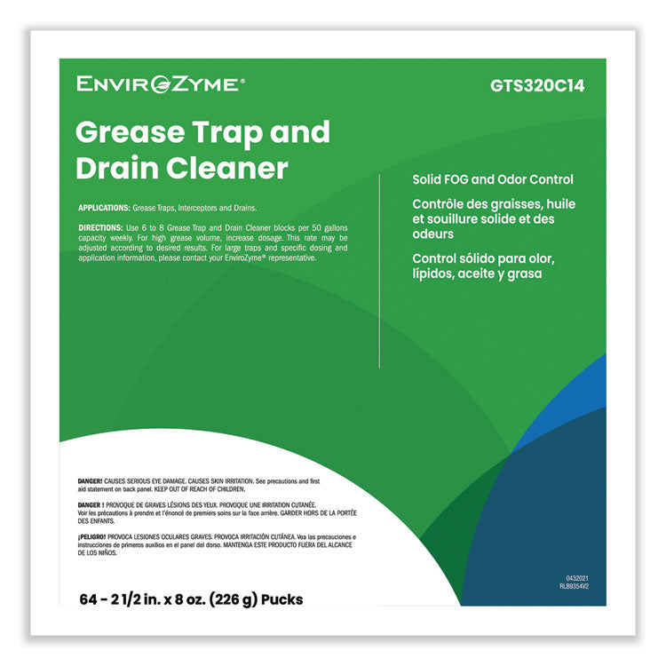 FOG Puck Large Grease Trap and Drain Cleaner, 8 oz, 64/Carton