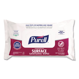 Say hello to PURELL® Foodservice Surface Sanitizing Wipes – your new method to quickly sanitize kitchen, dining, and food-contact surfaces in just one step. These wipes work like magic to wipe out 99.9% of germs without harsh chemicals. They're tough on germs, killing norovirus, E. coli, Salmonella, cold and flu, coronavirus, and more. Meets EPA 60-second no-rinse food-contact sanitization requirements. They help reduce the risk of cross-contamination and are perfect for tackling many items on your cleaning list, including tables, menus, cutting boards, food-prep counters, and cash registers. They also make it easy to sanitize large, hard-to-wash items. Plus, you can clean with confidence, knowing they've earned the EPA's lowest toxicity rating. No gloves, handwashing, or rinsing needed – they're safe on food-contact surfaces and hassle-free! The best part? They're super easy to use; just grab one and wipe away. As a ready-to-use solution, it's the perfect answer for quick and reliable sanitizing, disinfecting, and cleaning.