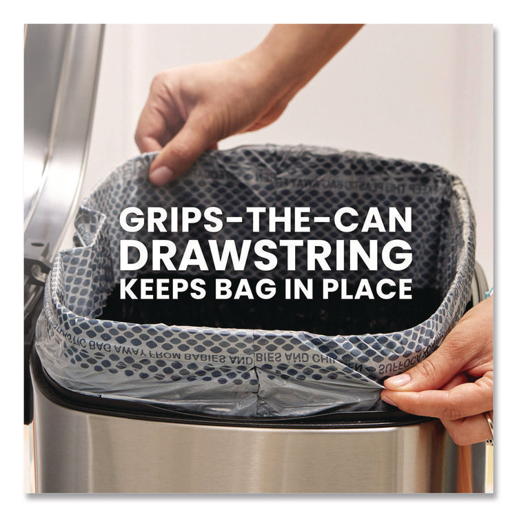 - These bags feature double side seams and grips the can drawstring plus LeakGuard plus RipGuard provide protection against leaks, rips and tears.