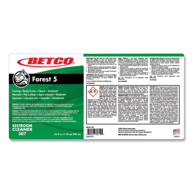 Forest 5 Foaming Cleaner, Mint Scent, 32 oz Bottle, 12/Carton