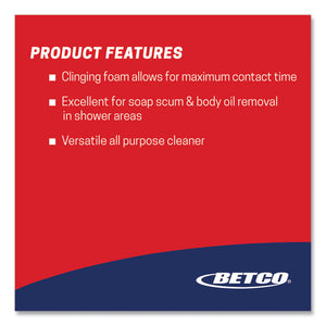 This foaming cleaner is the perfect convenience product for a variety of cleaning tasks. No mixing is required with this advanced, ready-to-use formulation. Three special solvents quickly penetrate the toughest soils found in nursing homes, hospitals, and institutions. Effectively cuts through soap scum and body oil deposits. Clinging foam allows for maximum contact time and leaves no residue.