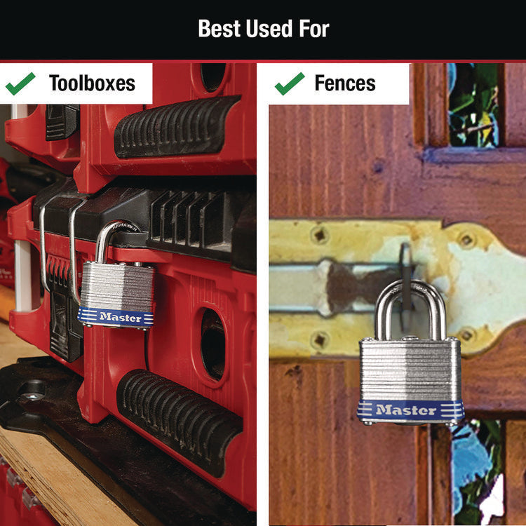 A tough and durable steel lock to help prevent theft and increase security. The laminated steel body provides superior strength, while the 4-pin cylinder helps prevent picking. Rust proofing ensures a longer life, especially with outdoor use.