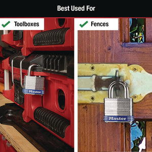 A tough and durable steel lock to help prevent theft and increase security. The laminated steel body provides superior strength, while the 4-pin cylinder helps prevent picking. Rust proofing ensures a longer life, especially with outdoor use.