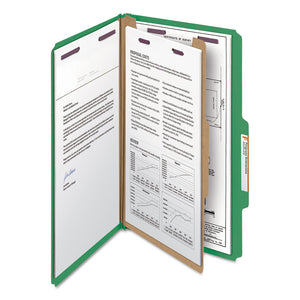 Four-Section Pressboard Top Tab Classification Folders, Four SafeSHIELD Fasteners, 1 Divider, Legal Size, Green, 10/Box