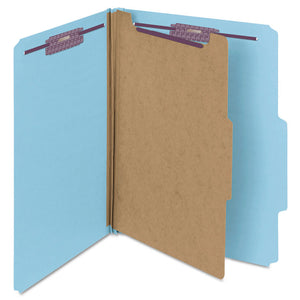 Four-Section Pressboard Top Tab Classification Folders, Four SafeSHIELD Fasteners, 1 Divider, Letter Size, Blue, 10/Box