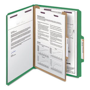 Four-Section Pressboard Top Tab Classification Folders, Four SafeSHIELD Fasteners, 1 Divider, Letter Size, Green, 10/Box