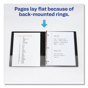 Now you don't have to choose between clever design and good looks. This Framed View Binder has both. Clean, elegant border on front panel perfectly frames and centers your title page for a professional look. Clear cover and spine inserts allow you to easily customize your binder using free, easy-to-use designs and templates from Avery® Design & Print (mounting sheets included). Two clear interior pockets and a business card pocket add to the professional image. Pages lie flat with back-mounted rings (exposed rivets on back). Wider front and back panels fully cover standard dividers and sheet protectors. In this binder, your presentation will get the attention it deserves.