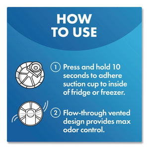 Take the baking soda out of the back and out of the box. Super grip suction cups lets you move the unit closer to the source of odors. Flow-through design exposes 2X more odor-eliminating baking soda for full fridge freshness and full-time odor control. Provides up to 30 days of freshness.