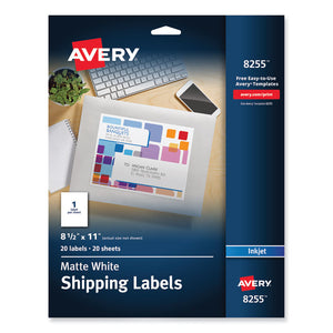 Full-Sheet Vibrant Inkjet Color-Print Labels, 8.5 X 11, Matte White, 20/pack
