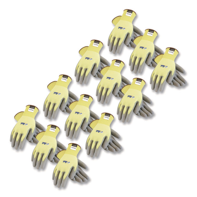 G-Tek KEV Cut-Resistant Seamless-Knit Gloves, EN388: 4231, Large (Size 9), Yellow/Gray, 12 Pairs