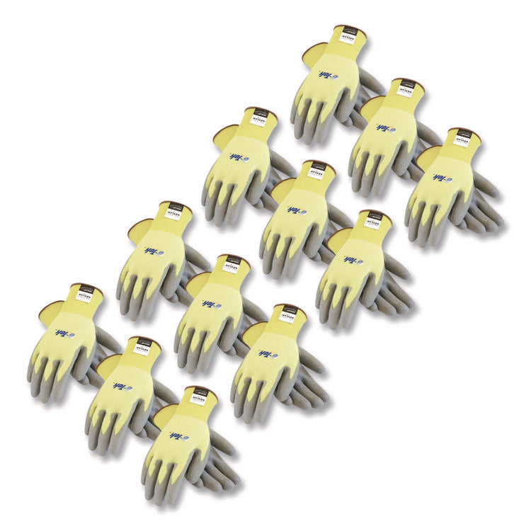 G-Tek KEV Cut-Resistant Seamless-Knit Gloves, EN388: 4231, Medium (Size 8), Yellow/Gray, 12 Pairs
