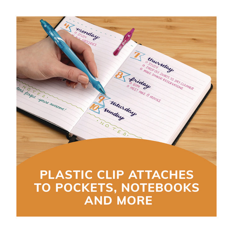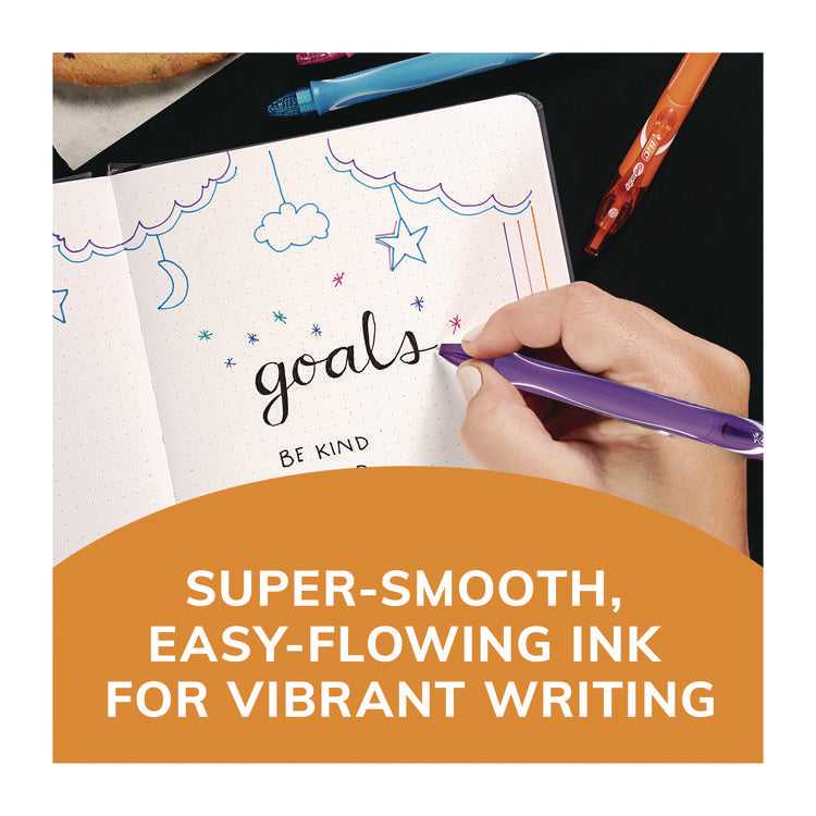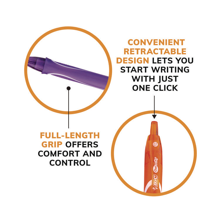 Enjoy a super-smooth writing experience with BIC Gel-ocity Quick Dry Gel Pens. Ideal for note-taking, journaling, and a variety of other everyday writing activities, these pens feature a super-smooth, smear-free, quick-drying ink that dries in as little as five seconds. The round barrel rests comfortably in your hand, while the 0.7 mm point creates vivid marks. This retractable gel pen allows you to extend and retract the tip with a simple click. Available in a variety of vibrant ink colors, these gel pens are sure to leave a fun, striking impression.