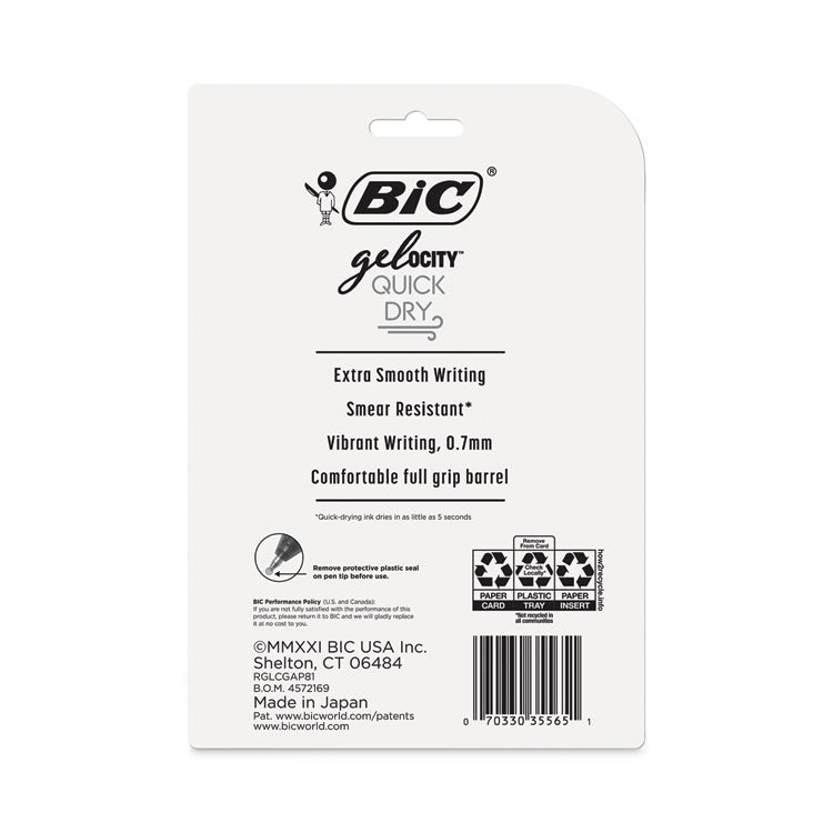 Enjoy a super-smooth writing experience with BIC Gel-ocity Quick Dry Gel Pens. Ideal for note-taking, journaling, and a variety of other everyday writing activities, these pens feature a super-smooth, smear-free, quick-drying ink that dries in as little as five seconds. The round barrel rests comfortably in your hand, while the 0.7 mm point creates vivid marks. This retractable gel pen allows you to extend and retract the tip with a simple click. Available in a variety of vibrant ink colors, these gel pens are sure to leave a fun, striking impression.
