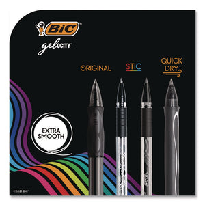 Enjoy a super-smooth writing experience with BIC® Gel-ocity™ STIC Gel Pens. Ideal for note-taking, journaling and a variety of everyday writing activities, these pens feature a unique, smear-free gel ink that dries in as little as five seconds, while their easy-flow system and high-quality points ensure fluid, precise, nearly effortless writing. Their smooth round barrels with rubberized grips rest comfortably in your hand, and their translucent design with ink-color-matched accents make it easy to grab the right color while allowing you to keep an eye on your remaining ink supply. Choose Gel-ocity™ STIC Gel Pens; they're sure to make a striking impression at work, at school and at home.