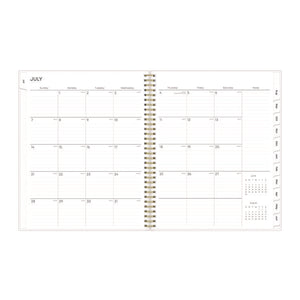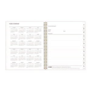 - Two-page per month spreads with laminated navigation tabs as well as past and future month reference calendars.