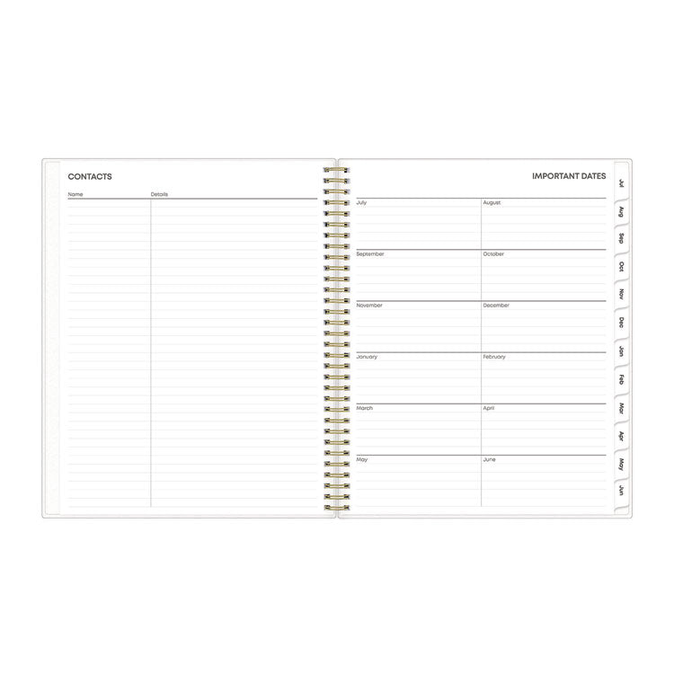 Keep track of upcoming events with this Gemma Academic Year Planner. It features spacious, two-page weekly and monthly layouts, tabbed months, extra notes pages as well as reference calendars, a goals section and more. For those who wish to keep track of their school year, while organizing tasks, yearly goals, to-do-lists and more, this planner is the perfect companion. Ample space for notes on each day, week and month help you stay focused no matter what the year might bring. While you're working hard, making your year as successful as it can be, an attractive, yet tasteful, geode-inspired Gemma pattern helps you, or at least your planner, stand out from the crowd. Planner is dated July to June and features two bonus past monthly spreads (May and June) for easy transitions into a new academic year.
