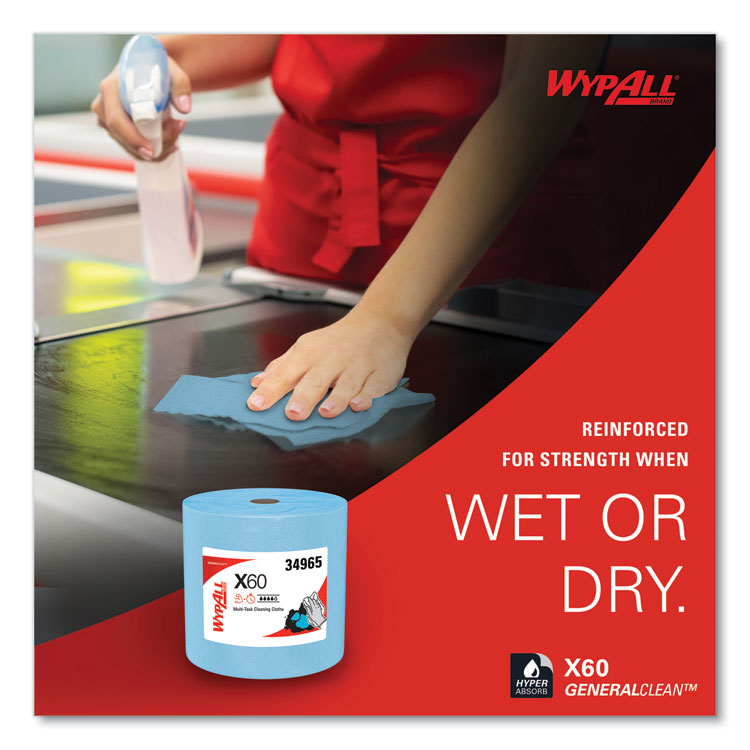 WypAll® General Clean X60 Cloths absorb more water than rags. They bring the absorbing power of HydroKnit technology (for superior absorbency) to a lighter-weight cloth. Designed to outperform laundered rags, the clothes help raise the standard for general-purpose cloths at a terrific value. They don't use adhesives or binders, so they'll leave no residue behind and they're reinforced for strength when wet or dry. These cleaning cloths are so sturdy that they can often be used more than once (once you've used them a few times, they're disposable). They're designed to reduce waste so you spend less.
