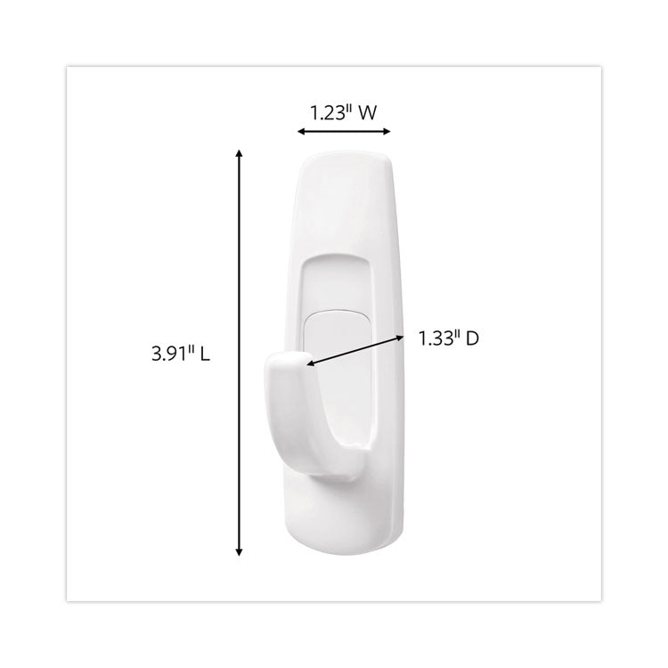 General Purpose Hooks, Large, Plastic, White, 5 lb Capacity, 1 Hook and 2 Strips/Pack