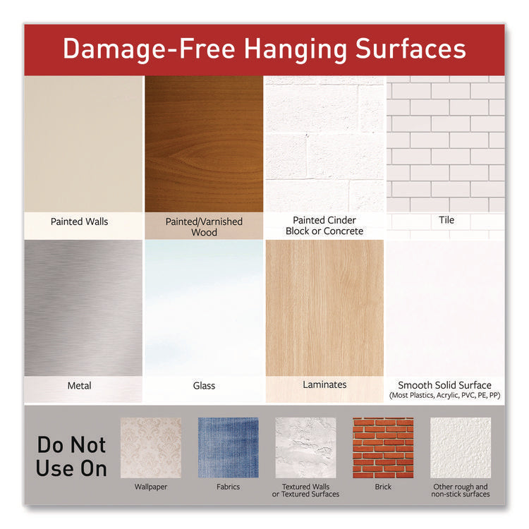 Forget about nails, screws and tacks, Command Hooks are fast and easy to hang and hold a surprising amount of weight. Command adhesive on the hook backs stick to many surfaces, including paint, wood, tile and more yet comes off leaving no holes, marks, sticky residue or stains. Rehanging is as easy as applying a Command Refill Strip, so you can take down, move and reuse them again and again.