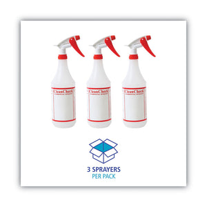 General Purpose Plastic Bottle with Trigger Spray, 32 oz, Clear/Red, 3/Pack