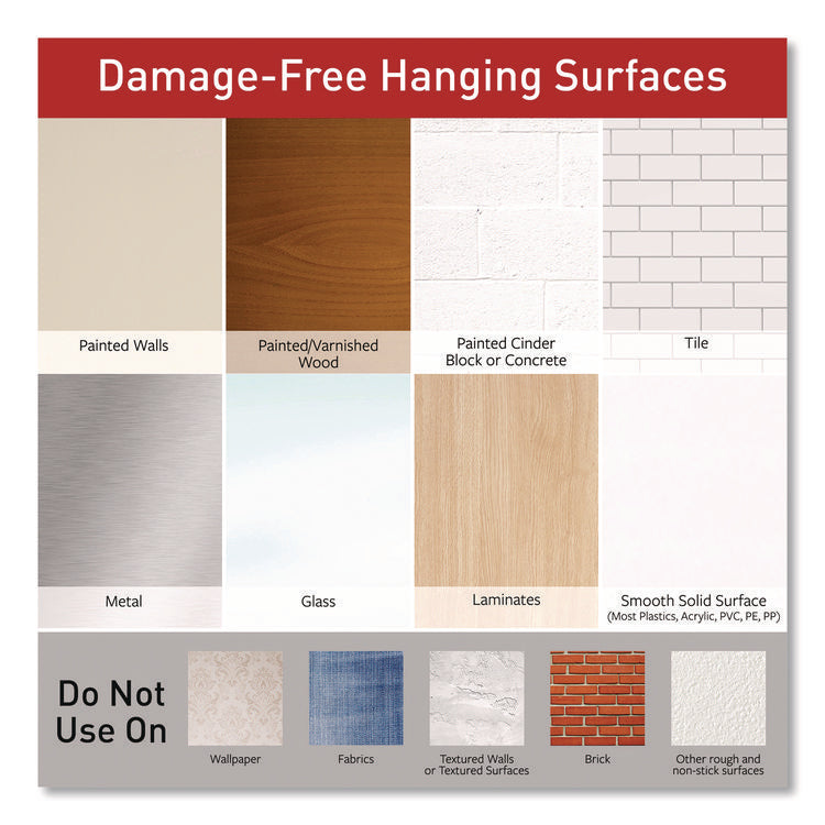 Forget about nails, screws and tacks, Command Hooks are fast and easy to hang and hold a surprising amount of weight. Command adhesive on the hook backs stick to many surfaces, including paint, wood, tile and more yet comes off leaving no holes, marks, sticky residue or stains. Rehanging is as easy as applying a Command Refill Strip, so you can take down, move and reuse them again and again.
