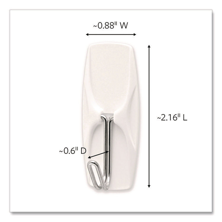 General Purpose Wire Hooks, Medium, Metal, White, 2 lb Capacity, 16 Hooks and 20 Strips/Pack